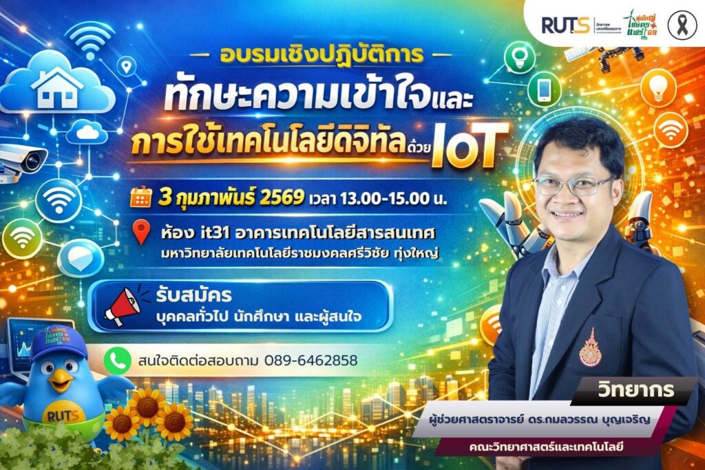 📢 ขอเชิญร่วมอบรมเชิงปฎิบัติการ เรื่อง ทักษะความเข้าใจและการใช้เทคโนโลยีดิจิทัลด้วย IoT